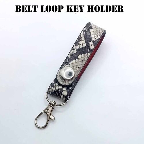 「革小物もセンス!」 本革 本物パイソン 蛇革 ベルトループキーホルダー キーリング